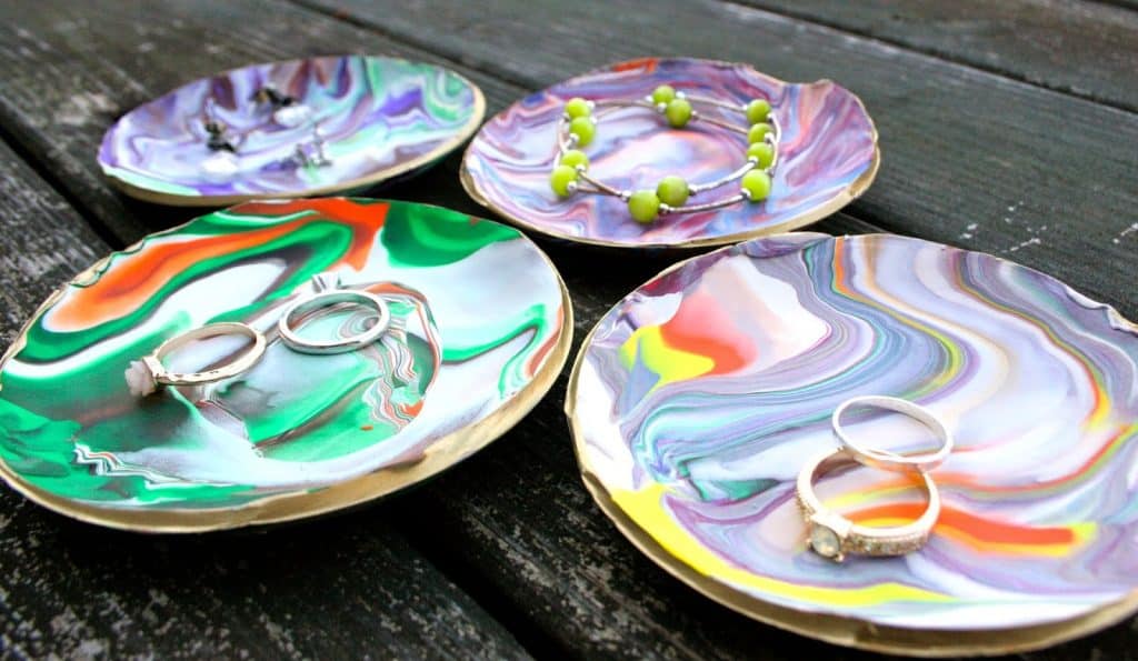 Add a little touch to your dresser or nightstand with one of these stunning DIY ring dishes!