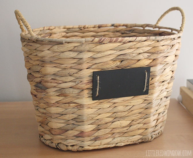 Basket with chalkboard label (you could use this plus this)
