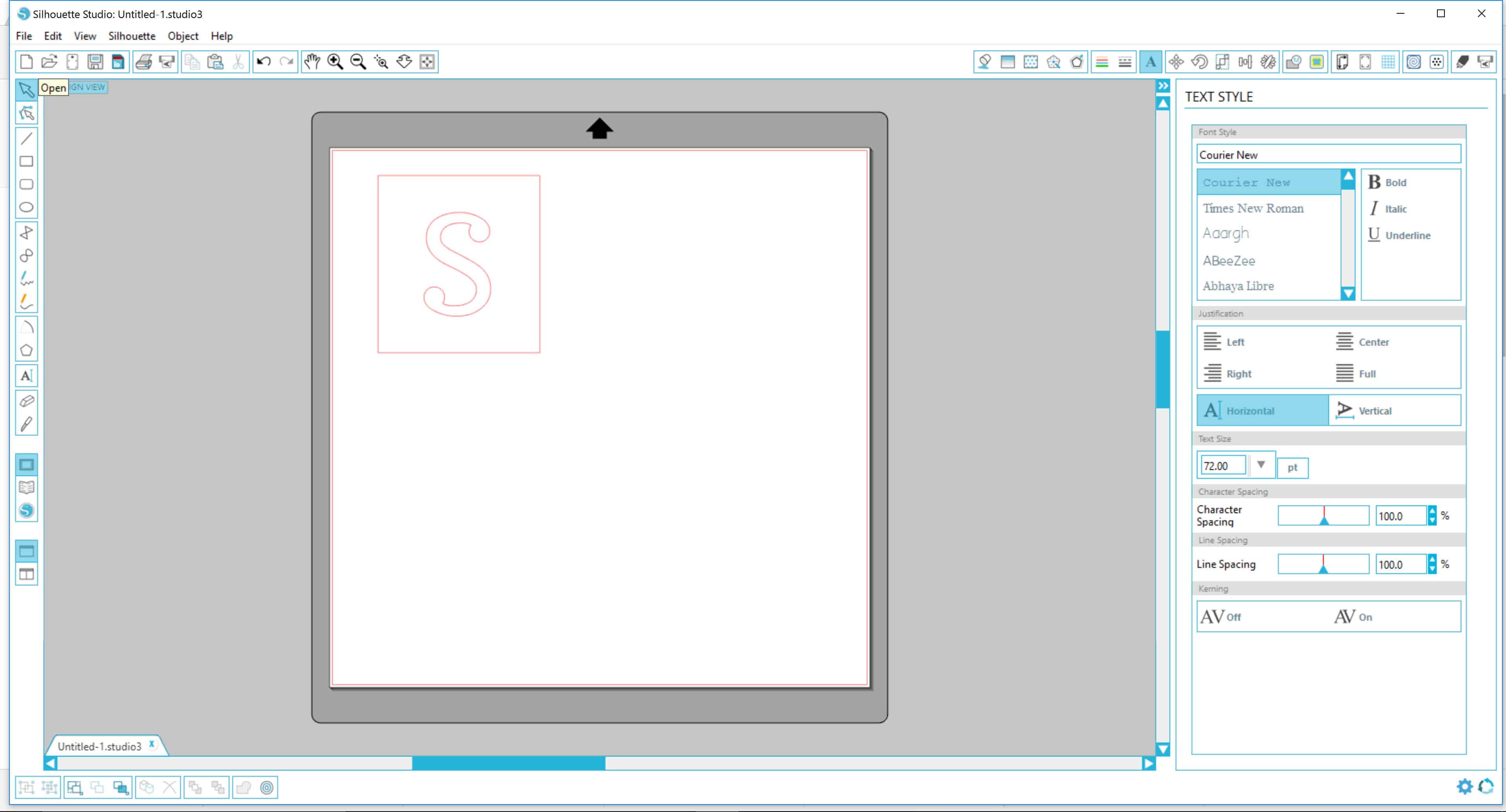 3. (You could do this step before you add the hinges, up to you.) I measure the coasters and then drew a square the same size in my Silhouette Studio software with a letter in the middle. I cut that first letter out of pink paper and then proceeded on with the rest of the letters and colors.