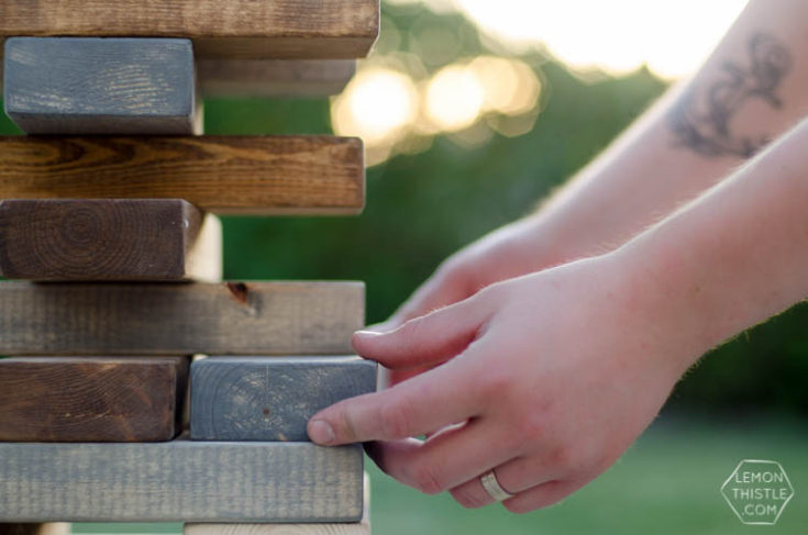 I can’t decide which one of these I want to make first, but I will tell you, that the giant stacking blocks (similar to Jenga) is always a hit with everyone. Our tiny toddler neighbor even likes it, she just stacks the blocks up and knocks them back down!