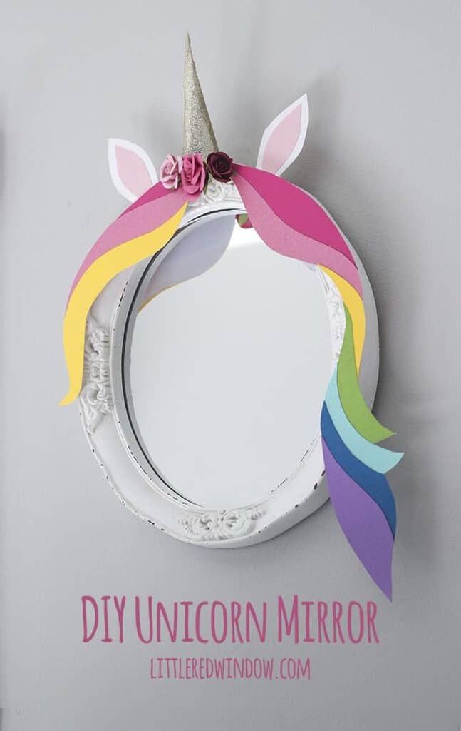 Turn a boring mirror into a unique and colorful Unicorn mirror, perfect for you little unicorn-lover's bedroom! This project is fun, quick and easy!