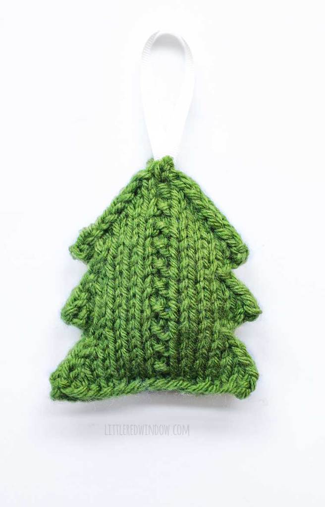 This classic Christmas Tree Ornament Set knitting pattern has easy instructions to knit a perfect candy cane, tree and star ornament!