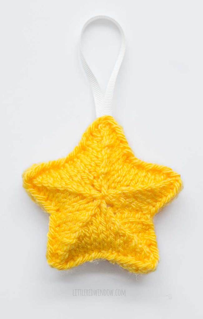 Then, after I had a dance party celebrating my successful one-piece knit star ornament, I decided it needed some friends. Enter the classic knit tree shaped ornament and the candy cane knit ornament. Aren’t they so stinkin’ cute all together?!
