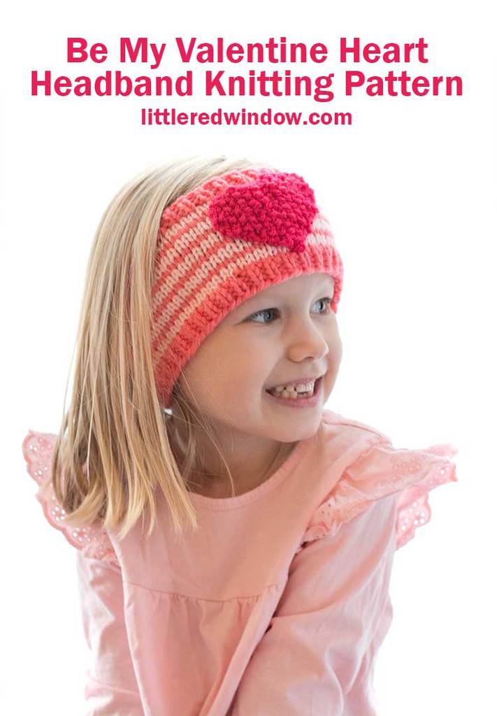 So this week we’re knitting the Be My Valentine Heart Headband Knitting Pattern. If you’ve been here for a VERY long time, you might recall one of my first patterns, the Be My Valentine Hat. Oh my gosh, you have to go look at the photos for that post. The cheeks! It’s unbearably cute!