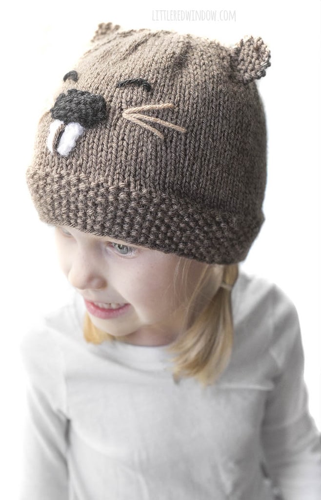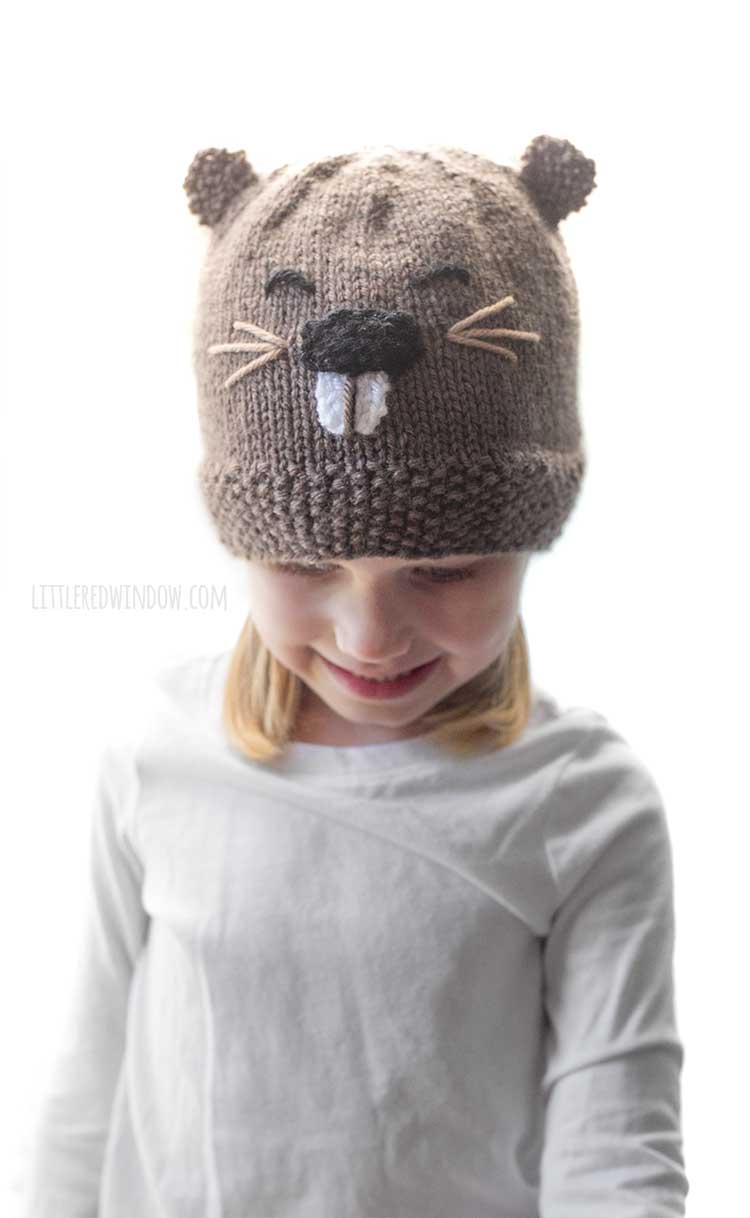 This adorable beaver hat knitting pattern is instantly recognizable. But I always test it with my kids. If it takes them any longer than 2 seconds to know what it is, I need to keep working. The both yelled, “beaver!” right away with this one. Presumably it’s the beaver teeth that make it super obvious, right?