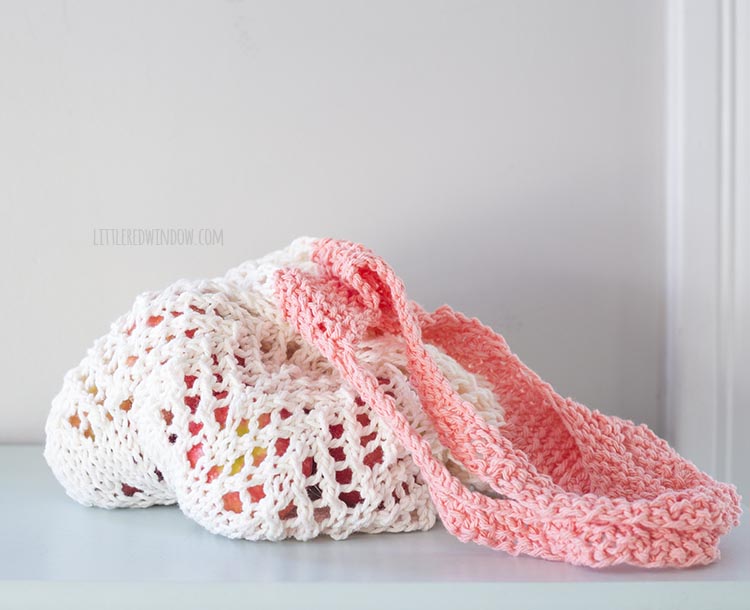 I know there are a million market bag knitting patterns out there, but I really wanted to do my own with a unique pattern for two reasons. Number one, I wanted one that was really easy to make. And number two, I wanted one that was unique and didn’t look just like all the other market bag knitting patterns.