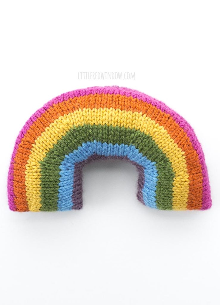 No weird techniques, no 9 million pieces to sew together (in fact, the rainbow is knit all in one piece!)