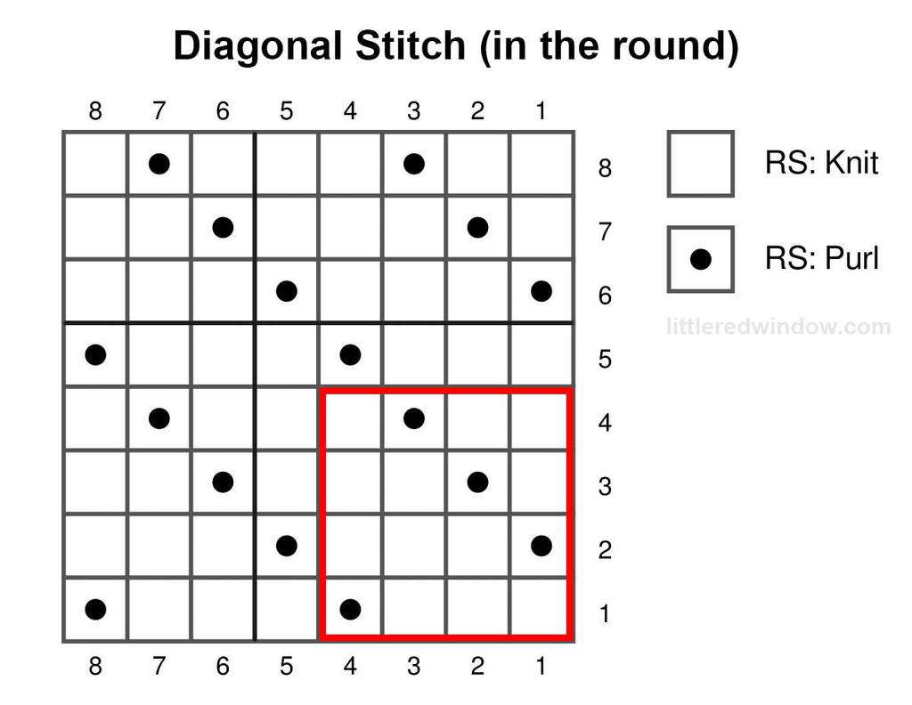 - Diagonal stitch looks very pretty when knit in the round.