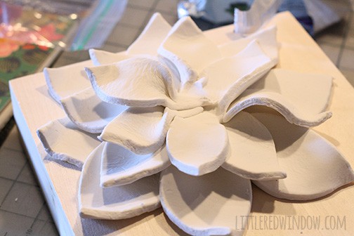 Mine stuck to themselves with a little smoothing and some water. But it probably depends on the brand of clay you’re using. If it doesn’t have any instructions, I would do a little experiment. Also, I can’t remember if I said in the post, but this took a LONG time to fully dry because it gets so thick in the middle. If you’re in a time crunch, you’re right, you could make all the petals separately, let them dry and then glue them together.