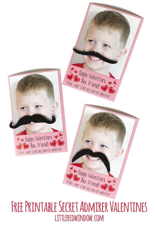 Add your own photo and make these adorable (not so) secret admirer valentines complete with silly mustache disguise!