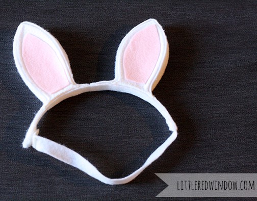 To make the bunny ears, I remember i really struggled trying to figure out what to make them out of. I thought cardboard at first but that wouldn’t really hold it’s shape. I didn’t have pipe cleaners. I didn’t want to use wire because I was afraid it would poke his little head. And then, deep in sewing supplies I found some leftover plastic boning! It was perfect, it held a curve but wasn’t tight and didn’t have sharp ends! I covered it in felt, I think I made the ears out of boning too? And then stretched felt across those as well. And again I used a little felt flap with velcro under the chin instead of elastic because I was a nervous new mom! Elastic might strangle him! (Actually it might, I probably would still not use it) The strap was enough to keep the ears on but it was not at all tight under his chin.