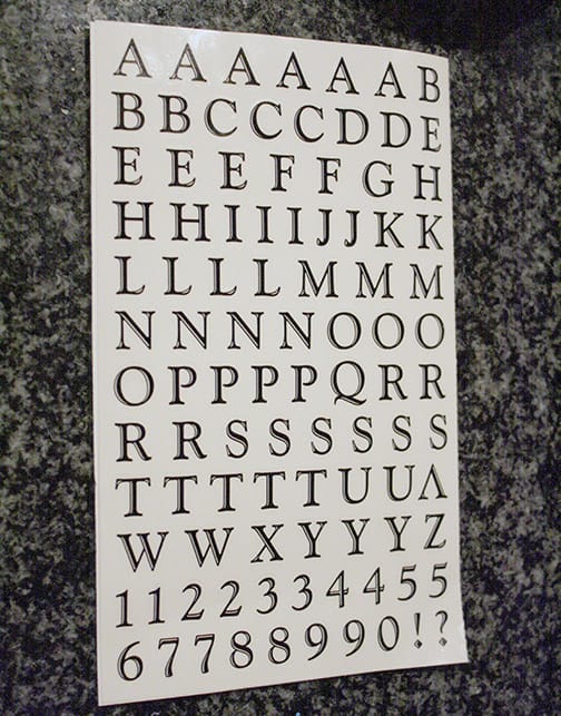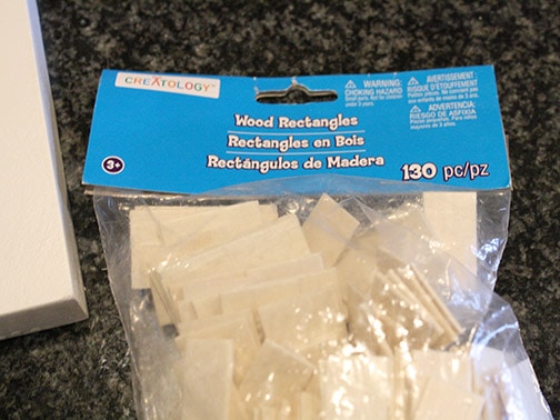 I wandered the craft store for a while trying to decide what to use for microwave buttons and eventually settled on this package of craft wood rectangles and a package of scrapbooking stickers (similar).