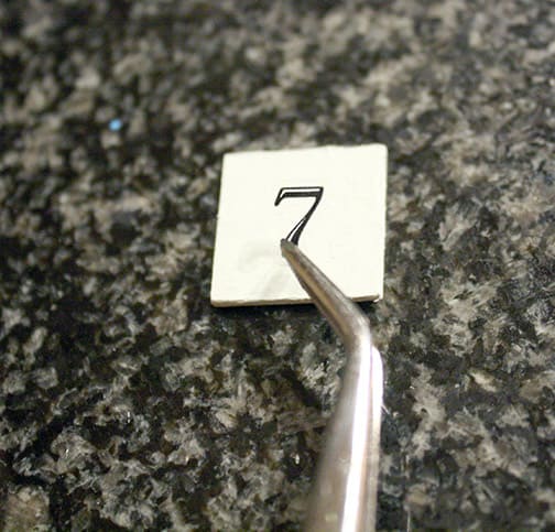 Then I used some tweezers to carefully apply the stickers and added a coat of polyeurthane to the top to seal them.