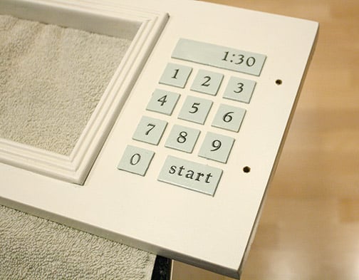 He used a router to cut the opening in the microwave door.