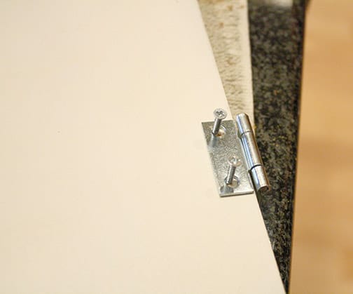 Then we held the doors up and marked and drilled for the hinges on the front edge of the nightstand body.