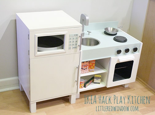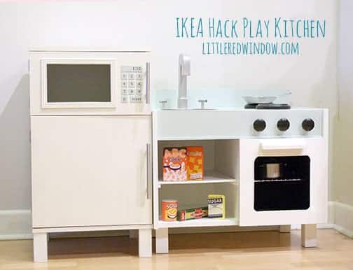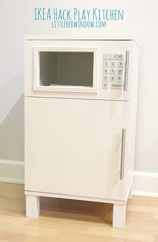 Make this adorable fridge and microwave combo from an old nightstand, it even has a lazy susan in the microwave and a fridge light that turns on when you open the door! As an Amazon Associate and member of other affiliate programs, I earn from qualifying purchases.Ikea Hack Play Kitchen - Fridge and Microwave