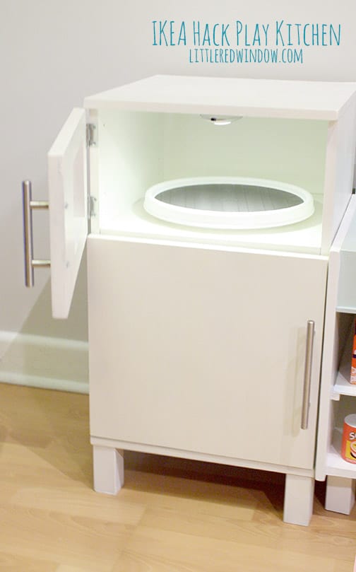 This turned out so cute! I especially love the lazy susan turntable in the microwave – what a clever addition.