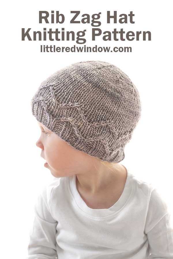 This fun Rib Zag Hat knitting pattern has a cute zig zag ribbed brim but is a quick and easy pattern to knit for anyone!