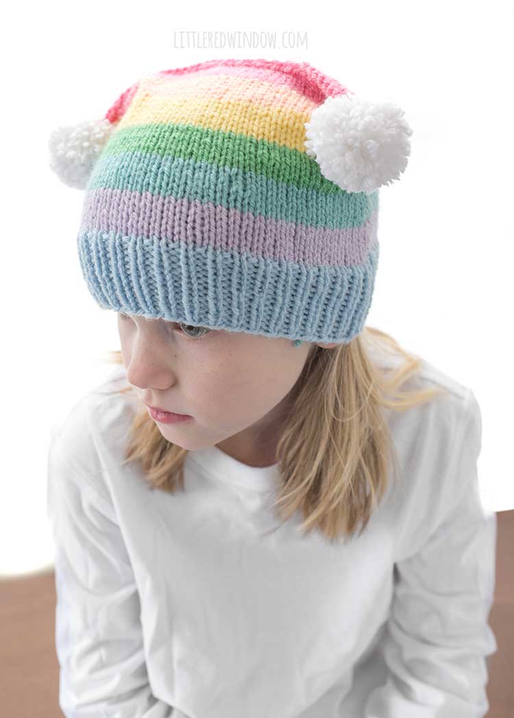 Rainbow Stripe Double Pom Hat Knitting Pattern