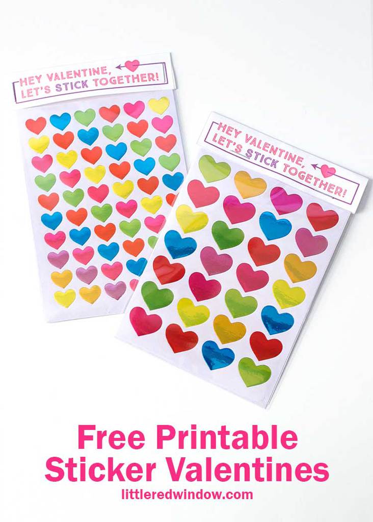 These cute free printable sticker valentines are easy peasy, just print, cut and staple to a sheet of stickers and you’re all set!