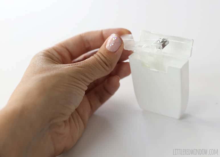 And then I had a eureka moment when I thought to use a dental floss container! How perfect is that?! And conveniently, my dad had the perfect classic dental floss container in his suitcase for me to use (he kept the flossy insides to keep using)!