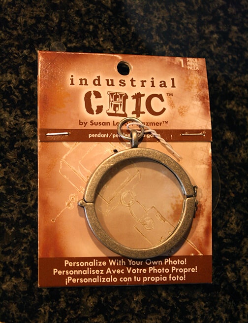with some kind of resin on top but I went to Michael’s AND Joann Fabrics (really the only two craft options we have) and neither one had them! So that was frustrating. Then on my second trip back to Michaels I happened to find a different kind of pendant that I had originally dismissed because it had a weird creepy photo of a Victorian woman in it. But upon further reflection, I realized that she was removable and so I got it. I should have left the creepy Victorian woman in so you could see…