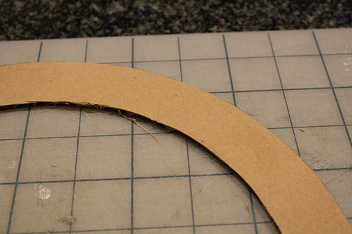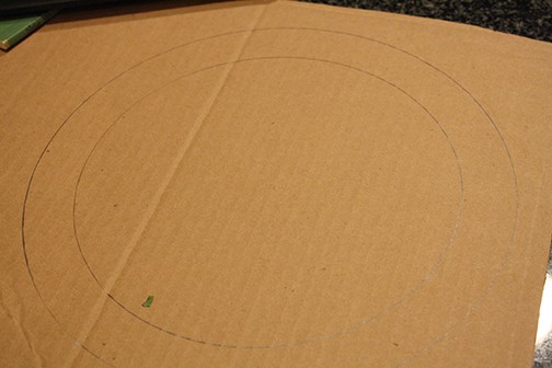 1.For the base of my wreath, I used a simple circle cut out of cardboard. My wreath was about 12″ and I just traced a dinner plate and then a salad plate for the center. I cut it out using an exacto knife.