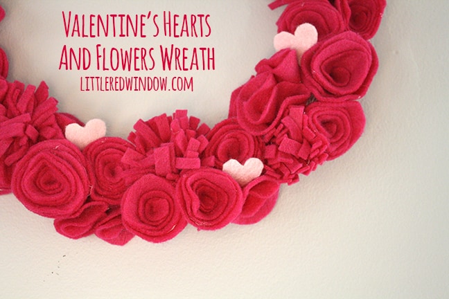 So anyway, I made this Valentine’s Hearts and Flowers Felt Wreath solely out of things I already had in the house, but if you had to go buy supplies, I promise, it would be a cheap one!