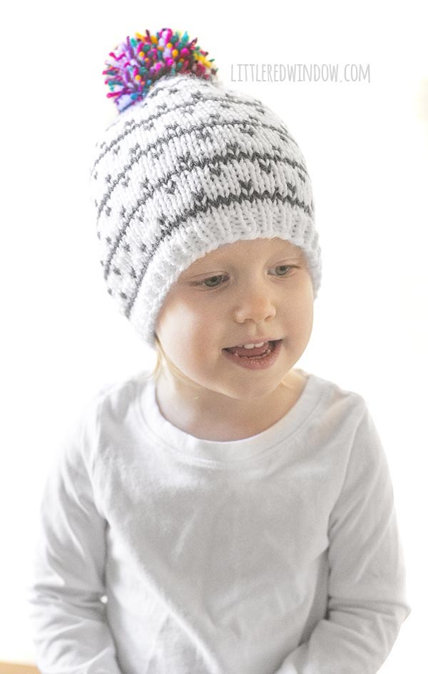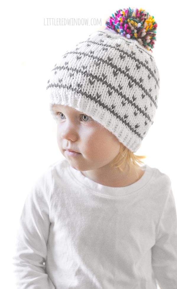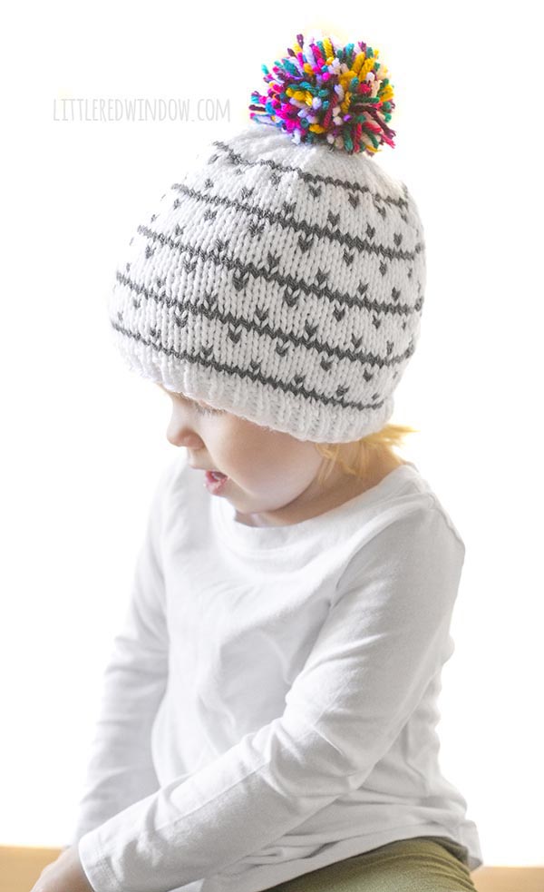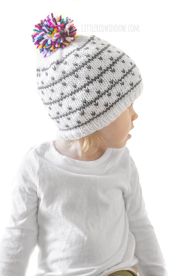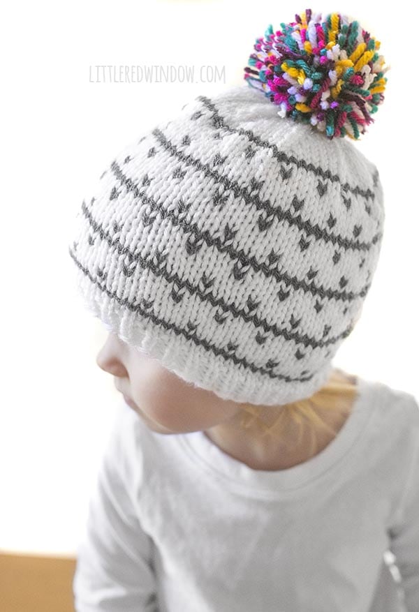 I am so excited about the kaleidoscope hat knitting pattern with its fun multicolored pom pom on the top. But I cannot even believe that this one was lost in my files. How did I not share this earlier?!