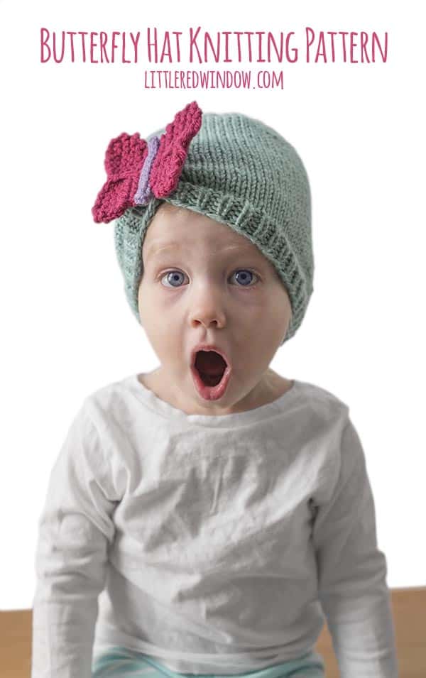 Boy, do I wish designing always worked like that! Anyway, while this butterfly hat caused me some stress, it won’t cause YOU any stress because it’s really super easy to make. No fancy stitches, too many needles, or millions of ends to weave in. Honestly, they’re super easy and so cute!