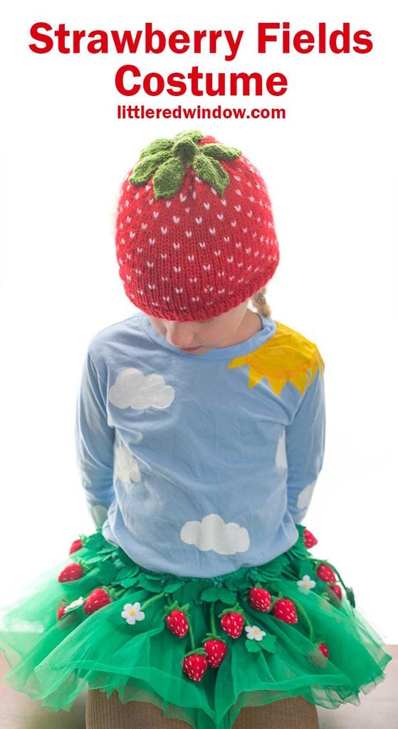 I mean, a strawberry patch costume? Sign me up! Of course, once I finished it and showed my parents, my dad immediately started singing “Strawberry Fields Forever” and I felt kind of silly that I hadn’t thought of that. So Strawberry Fields Costume it is!