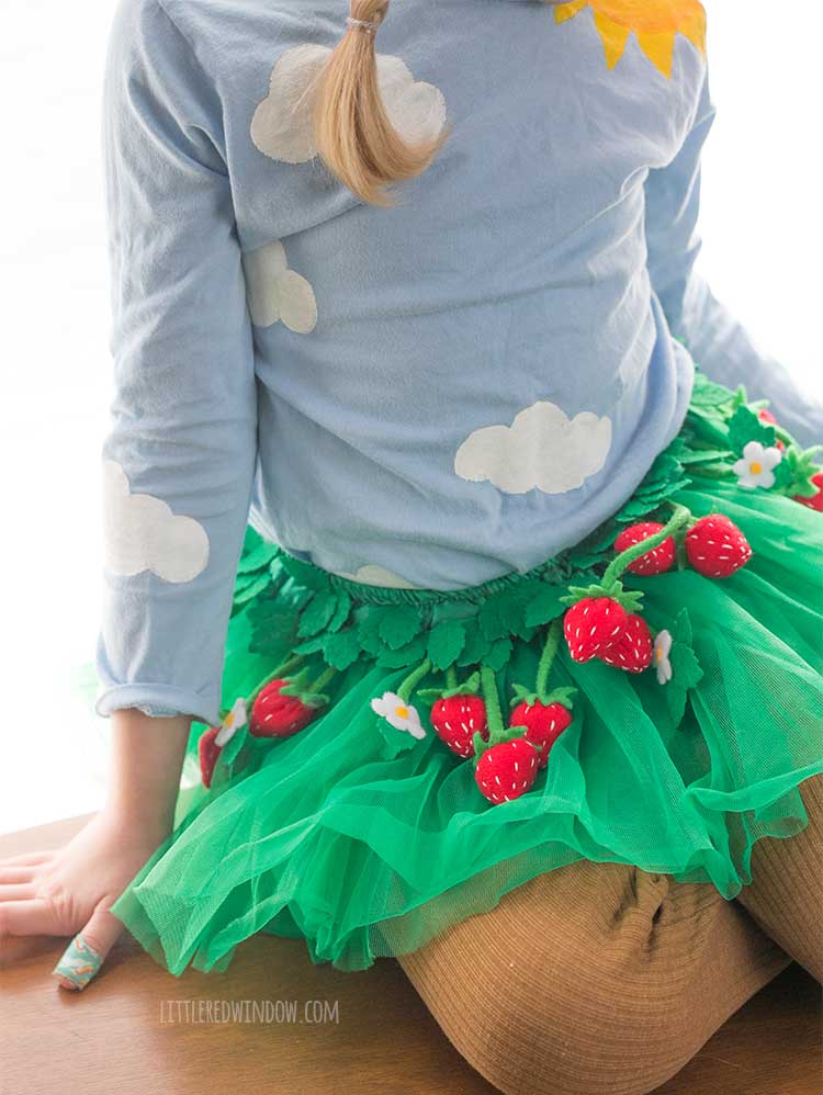 She insisted that brown leggings were required “to be the dirt” that the strawberries go in, but this would be cute with green leggings as well!