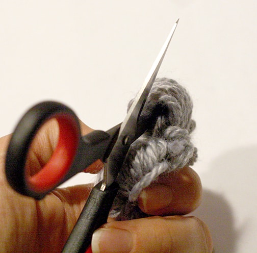 Cut through all the loops with sharp scissors to “release” the pom pom
