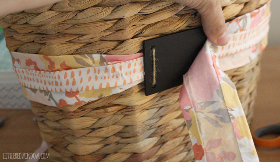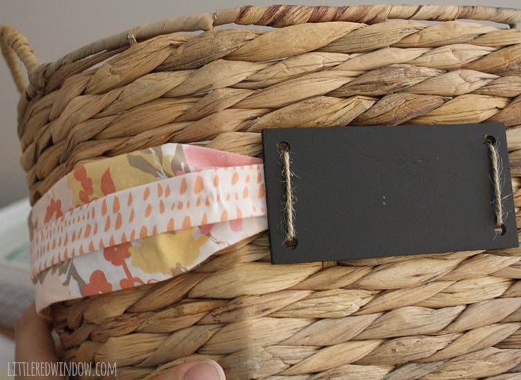 Customize a boring basket with fabric ribbon and use it as a convenient place to stash diaper supplies! If you’ve had babies, you know that everyone tells you that you need a changing table and a fancy changing pad in the nursery (you don’t, just use the top of a dresser) but what they don’t tell you is given how many times a day you change a diaper, especially for new babies, you are not going to want to walk to the nursery every single time. When we had O, we lived in a reasonably small condo and we still didn’t always want to walk all the way down the hall to his room. So we kept some diaper supplies in the living room so we could change him on the couch or the floor or in our bedroom.