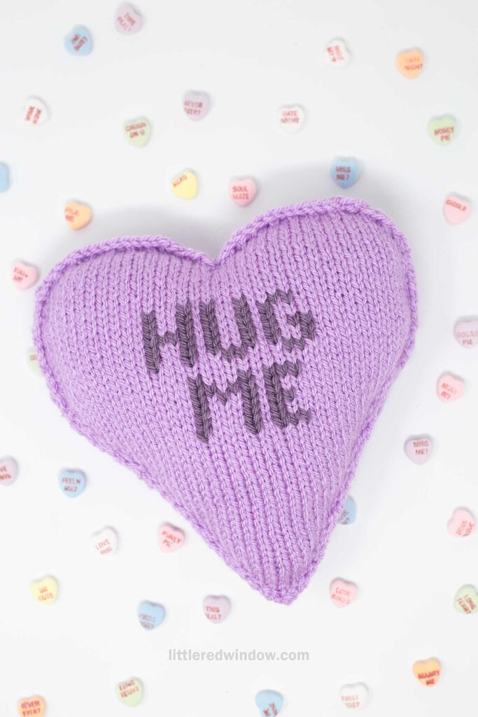 One of my most popular Valentine’s Day knitting pattern is my Love Notes Hats knitting pattern, knit in pastel candy colors with cute Valentine’s Day sayings on them. But this year I finally knit up some actual knit heart shapes to look like conversation hearts candy!