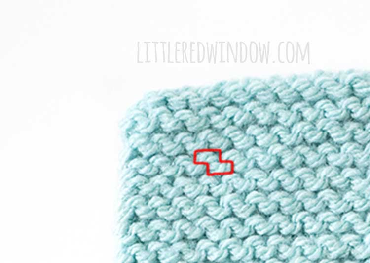 Here is how the individual purl stitches make up one row of garter stitch (the first stitch on the left is kind of wrapping around the side, but it’s there):