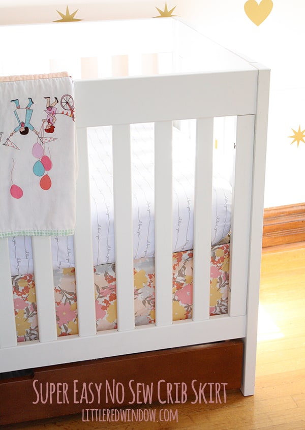 Make a custom crib skirt for your nursery that’s no-sew and super easy!!