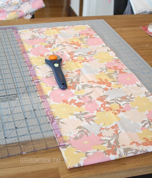 1. First, I measured our crib. The crib skirt will attach directly to the mattress frame so I took the mattress off. We also had just moved the mattress frame up to its highest setting (from the lowest which is what O used when it was a toddler bed) so I waited to reattach the front crib rail until I finished the crib skirt because it was easier. But see what I mean, all that stuff in the drawer under the mattress looks terrible and you can see it right through the crib rails!