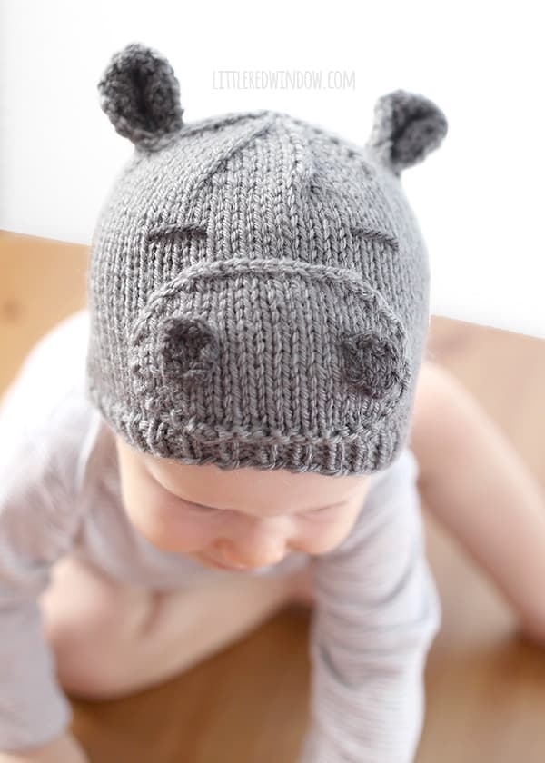 Knit a happy little hippo hat for your baby with this cute knitting pattern!