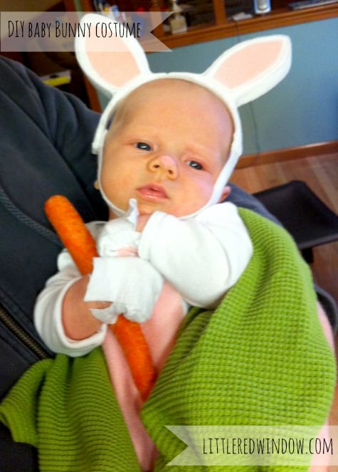 It’s Halloween week and I thought this week I would share some homemade costumes from years past. One of my favorite is definitely O’s very first Halloween when I made him a tiny and adorable Newborn Baby Bunny Costume! He was about 2 months old and I remember that making this costume was literally the first even remotely artistic thing I had done since he was born. I was exhausted (as parents of newborns are known to be) and I still wasn’t feeling ready to leave the house a lot. I thought about it way too much and decided I was going to make a Baby Bunny Costume out of only things I already had in the house! I remember making this in my bedroom on the floor while O was napping next to me, trying desperately to finish before he woke up. It was a truly Make it Work kind of project. Tim Gunn would have been proud!