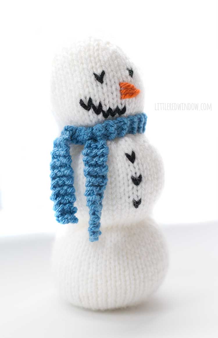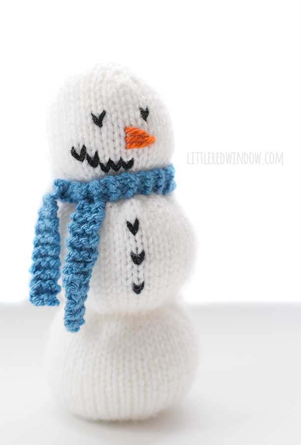 This adorable snowman knitting pattern, knit flat with worsted weighty yarn, is the perfect holiday decor pattern!