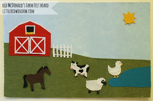 I had so much fun making the Apple Tree Felt Board for O (and I may or may not have had a mountain of extra felt leftover, I plead the 5th!) that I thought I’d make another. This time I went with a Farm theme because, at the time, he didn’t really have any farm themed toys and I love to at least try to come up with gender neutral play ideas. Anything to get away from trucks and trains ALL. THE. TIME!